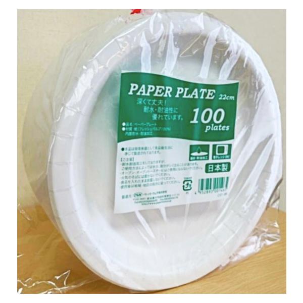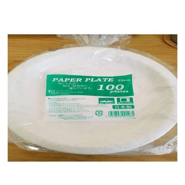紙皿 ペーパープレート 使い捨て 22cm 100枚 耐水 耐油 電子レンジ対応 バーベキュー キャンプ 日本製 コストコ