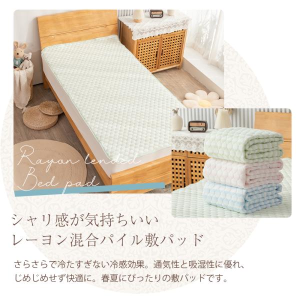 敷きパッド さらさら 春夏 レーヨン パイル シングル 100×205cm しなやかな肌触り 自然由来 シンプル おしゃれ オールシーズン 新生活 洗濯可能 吸湿性