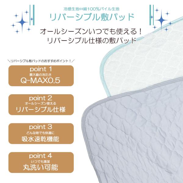 冷感 敷きパッド ひんやりマット セミダブル 夏 リバーシブル 120×205 Q-MAX0.5 冷感敷きパッド 冷感マット ベッドパッド 夏用敷きパッド 冷感寝具 タオル パイル 綿 洗える 丸洗い
