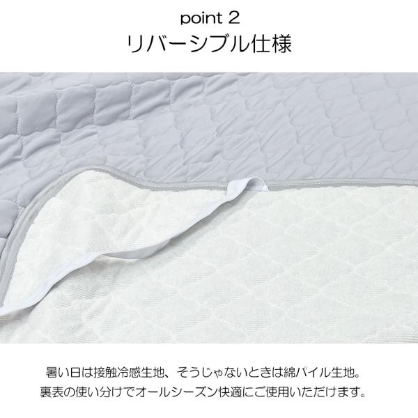 暑い日は接触冷感生地、暑くない日は綿パイル生地とその日の気温に合わせて調節が可能。