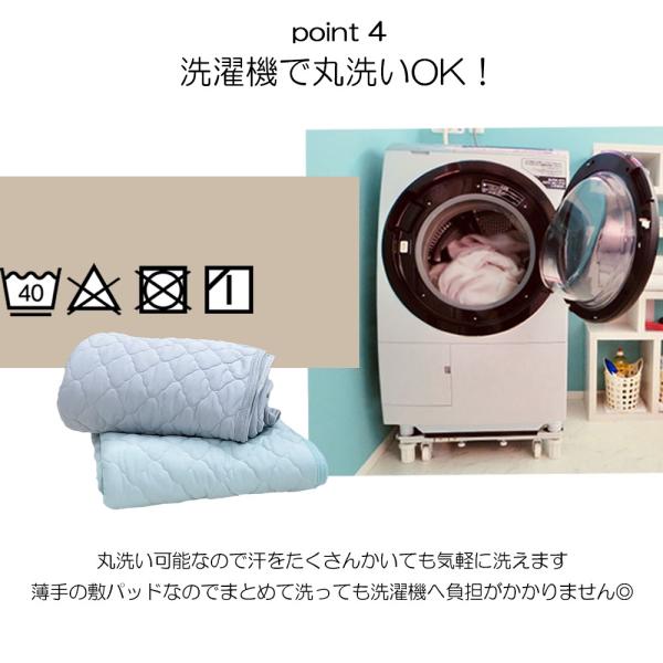 洗濯機で丸洗いが可能なのでいつでも清潔に。薄手の敷パッドなので洗濯機にも負担がかかりません。