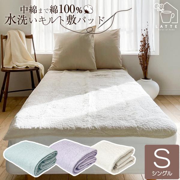 敷きパッド 綿 100% シングル オールシーズン 高吸水 水洗いキルト キルト 両面 中わた コットン さらさら ベッドパッド ベッドパット