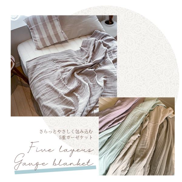 ・天然素材の綿100%ガーゼを5重に重ねた優しい肌触りのガーゼケットです。