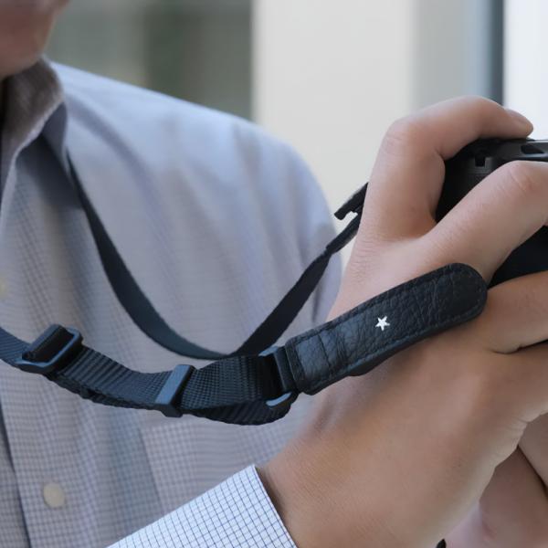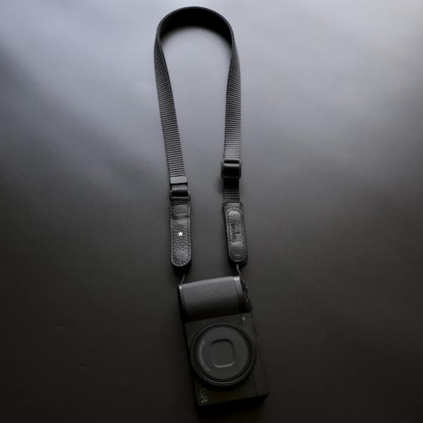 長さ調整ができるナイロン製ネックストラップ。