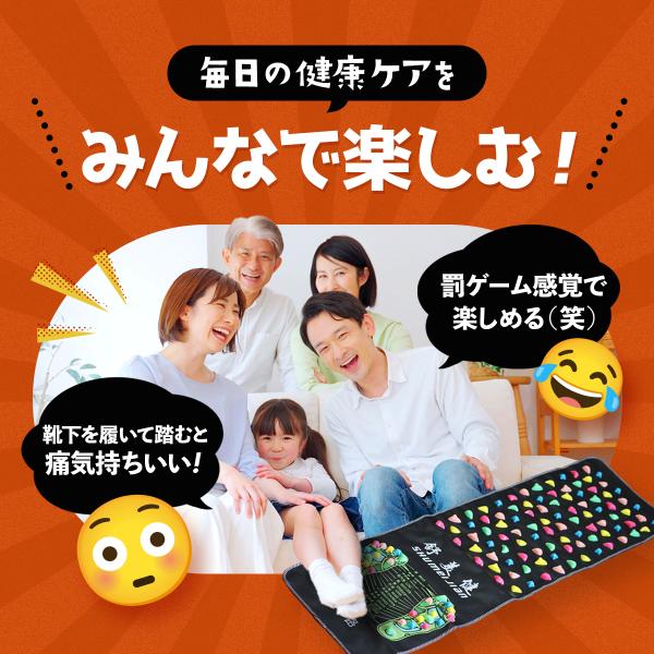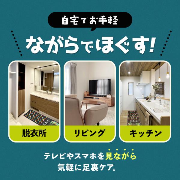 突起の形状と配置にこだわり、まるでプロの指圧のような刺激を実現。キッチンでの料理中やテレビを見ながら、踏むだけで血行を促進し、冷えやむくみをケアします。