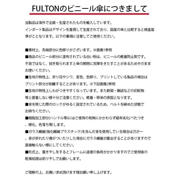 ・商品の内側の白い粉は、傘生地の張り付きを防止のものです。拭き取ると傘の開閉に支障をきたすことがあります。