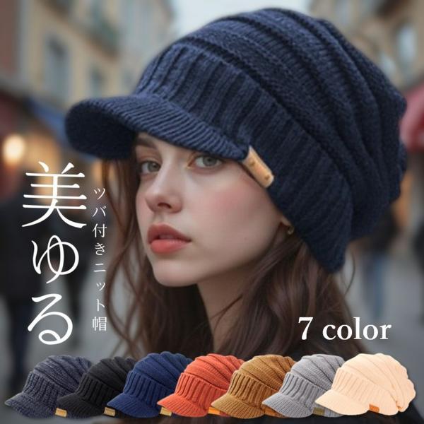 ニット帽 つば付き 帽子 大きめ 大きい 裏起毛 キャスケット ゆったり 深め 医療用帽子 ニットキャップ リブ編み 冬 秋冬 メンズ レディース 小顔 爆買