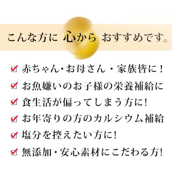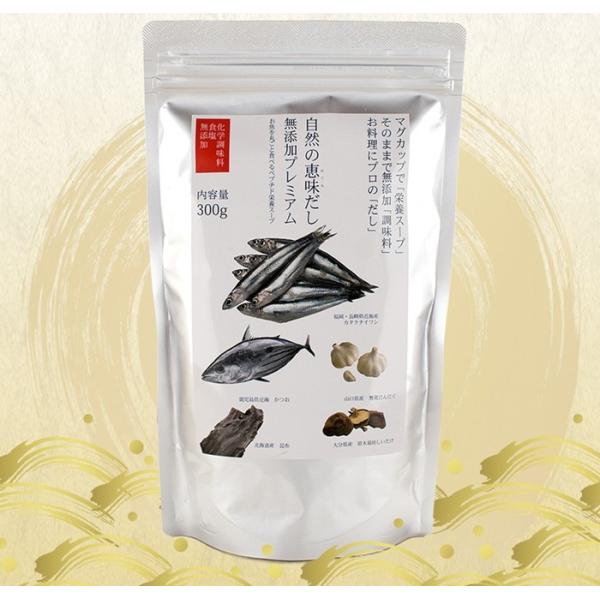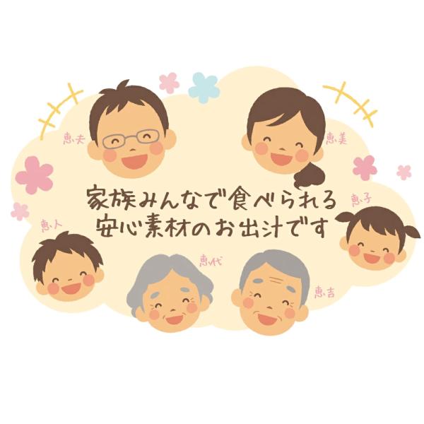 福岡、長崎県近海産のカタクチイワシ、鹿児島県近海のかつお、山口県産の無臭にんにく、北海道産昆布、大分県産原木栽培しいたけなど国産素材を贅沢に使用。