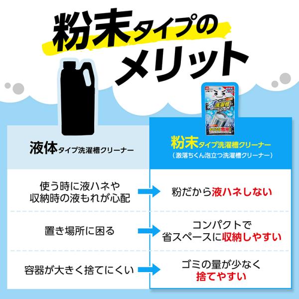 ●一般的なボトル入りの洗濯槽クリーナーと比べてコンパクトなのでストックに適しています 。