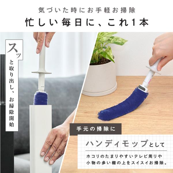 ●伸縮タイプなので、照明やエアコンなどの手の届かない高い所や、家具・家電のスキマなどに便利です。