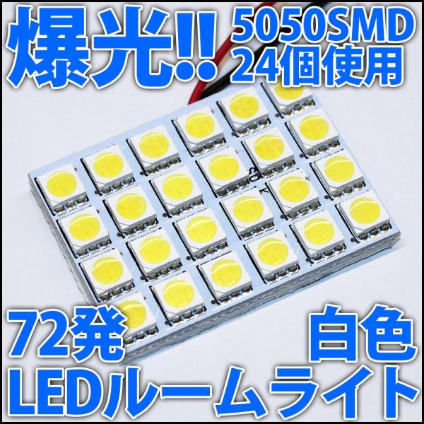 爆光!! 5050SMD 24個搭載 合計72発 LED 白色 白 ホワイト T10 T10ウェッジ 車内灯 室内灯 ライト ルームライト ドアランプ ルームランプ マップランプ LED