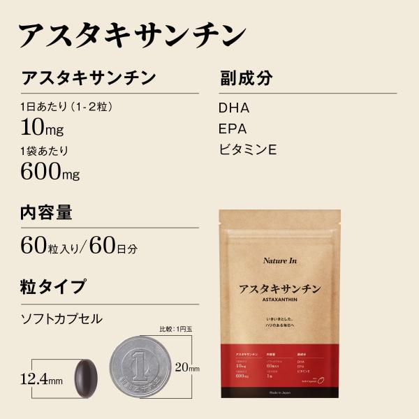 アスタキサンチン 高濃度 サプリ 10mg 60粒 2ヶ月分 Nature In DHA EPA ビタミンE カプセル 肌 美容 高濃度 国内製造 爆買
