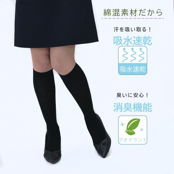 2点までメール便発送可4種 綿混 ブラック靴下 ハイソックス クルー丈 ふくらはぎ丈 消臭機能 吸水速乾