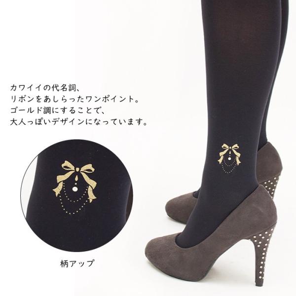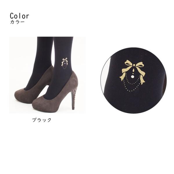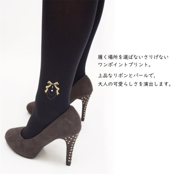 メール便2足まで 3L〜8L プリントタイツ パールリボン 結婚式 日本製 piedo FreeFit(フリーフィット)大きいサイズ レディース LegStyle
