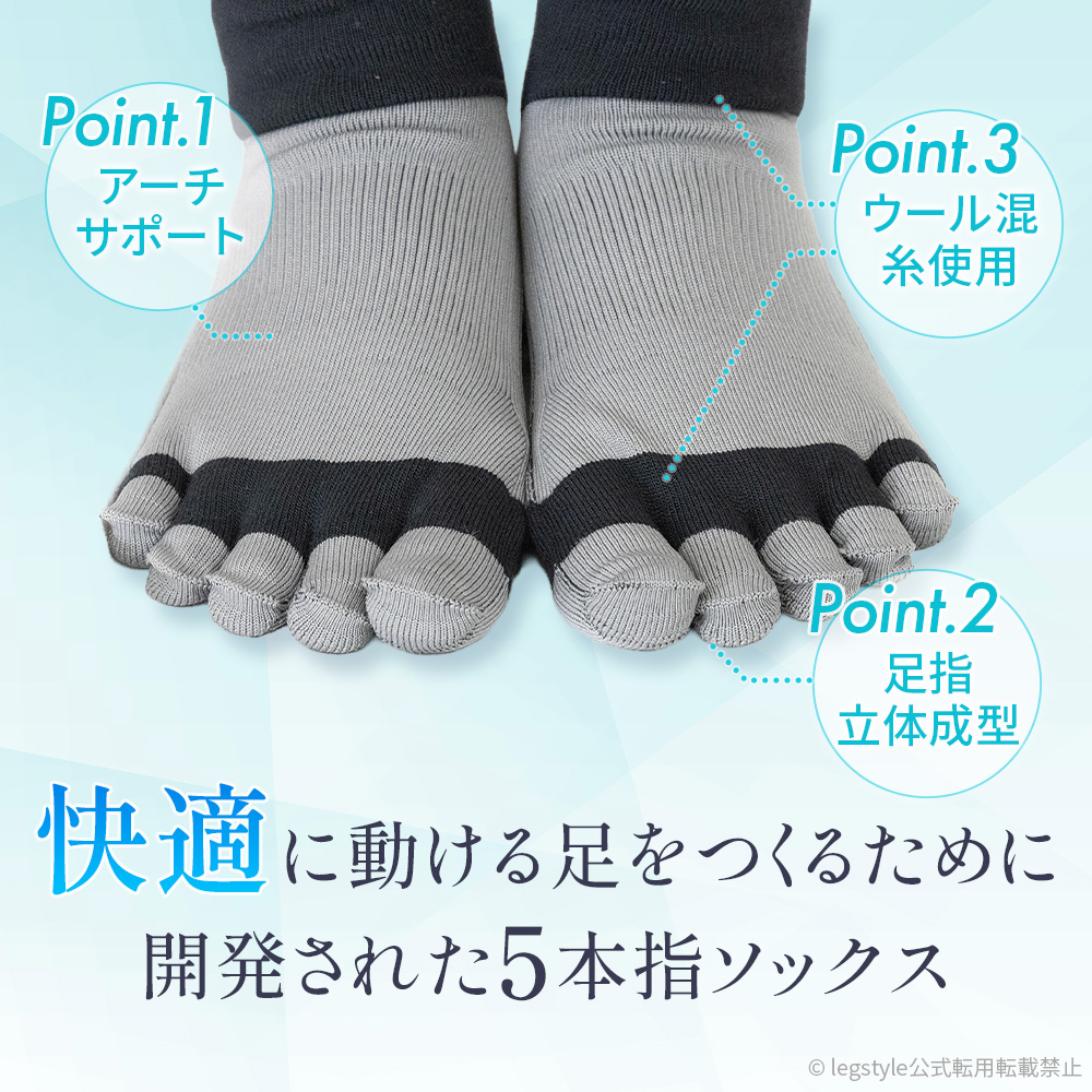 500円OFFクーポン 足指立体成型仕様 心地よい締め付け感のアーチサポート 指と足首部分にウール混仕様 スポーツ 5本指 【メール便1点まで】【メール便12】