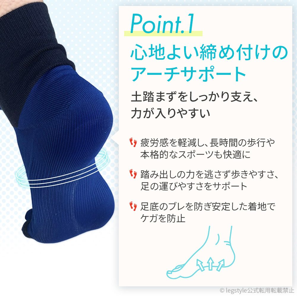 足指立体成型仕様で心地よい締め付け感のアーチサポート
