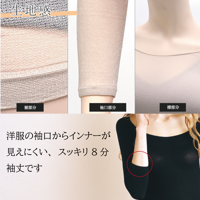 袖口から見えにくい8分丈袖。