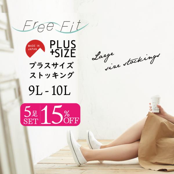 【メール便対象外】【5足セット】大きいサイズ ストッキング 簡易包装 太ももゆったり♪日本製 レディースストッキングL LL 9L 10L piedo FreeFit フォーマル