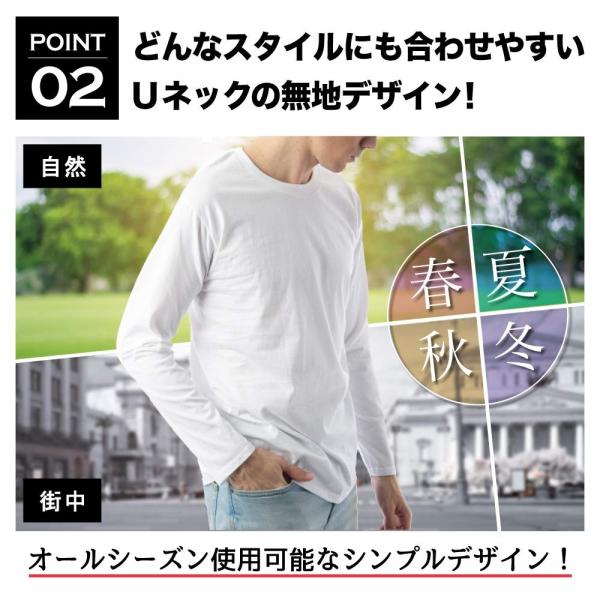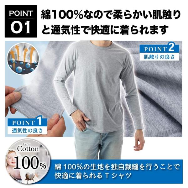 1.綿100%で柔らかい肌触りと通気性が自慢。独自裁縫により1年中快適に着られます。