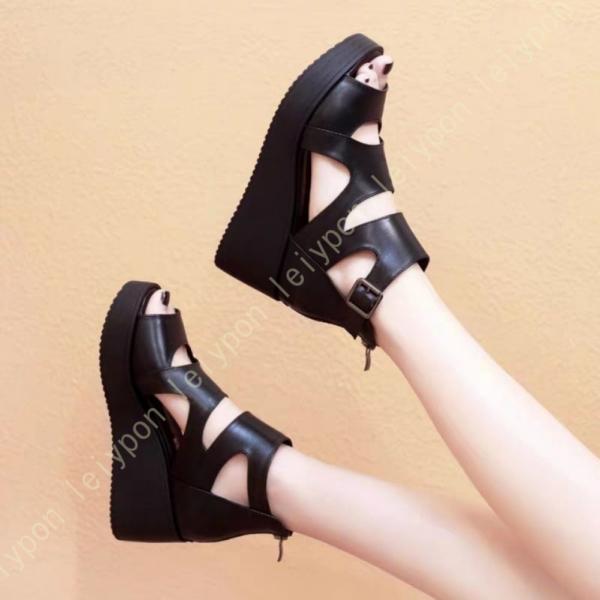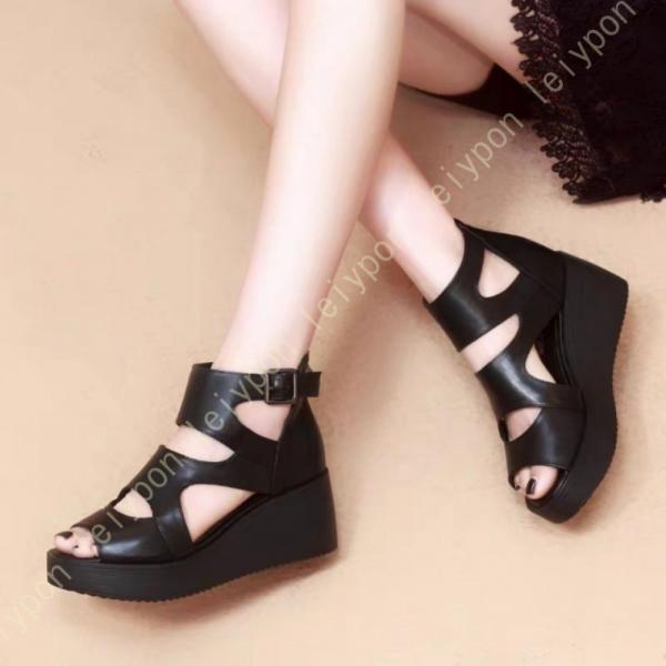 サンダル レディース 厚底 通気性 メッシュ サマーブーツ 夏ブーツ 厚底サンダル ウェッジソール ブーツサンダル ブーサン ウェッジショートブーツ 黒 ヒール