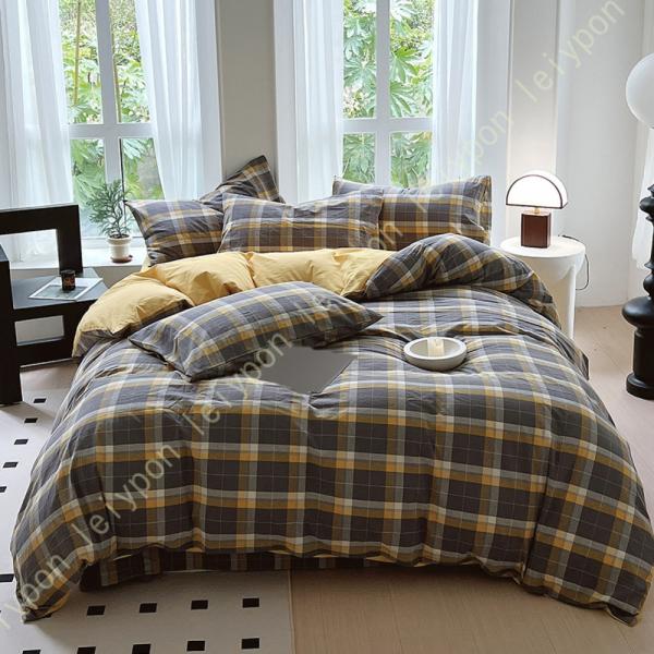 掛け布団カバー ピーチスキン加工 チェック柄 布団カバー 寝具カバーセット 3/4点セット ベッド用品 セミダブル ダブル シングル 枕カバー 敷布団カバー