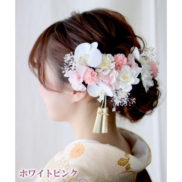 成人式 髪飾り ヘッドドレス 和装 花 ウェディング 胡蝶蘭 袴 卒業式 振袖 結婚式 ブライダル 白無垢 シルクフラワー ヘアアクセサリー コチョウラン 5輪 造花