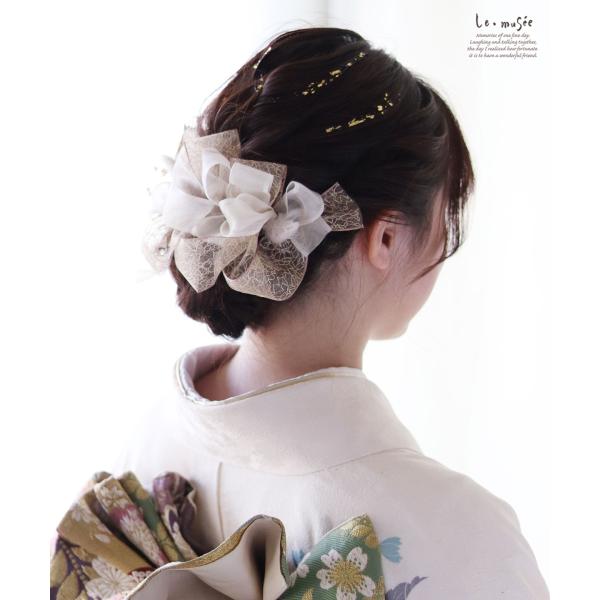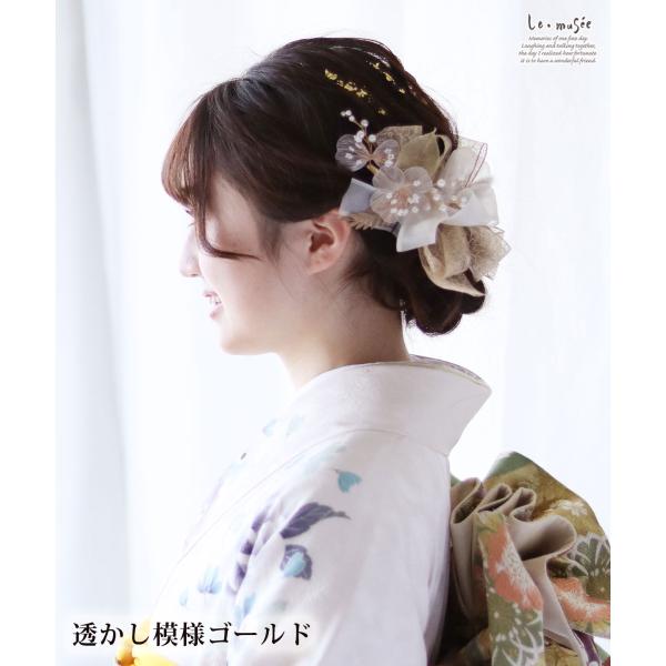 卒業式 成人式 袴 リボン 髪飾り 和装 ちりめん ふっくら ヘッドドレス 卒園式 大学 小学生 中学 古典モダン 全2色 結婚式