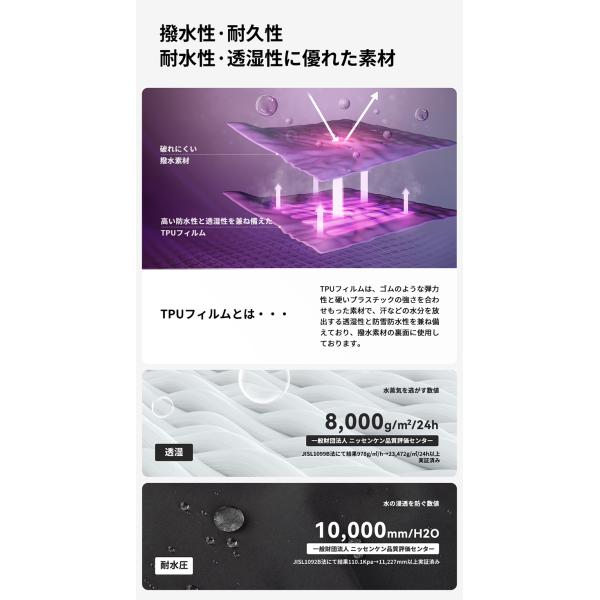 汗などの水蒸気を逃がす透湿性を兼ね備えた素材