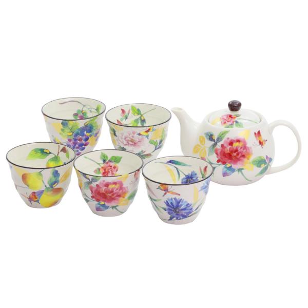 食器 日本製 美濃焼 磁器 花柄 ギフト プレゼント おしゃれ かわいい レトロ ポット茶器 ポット セット お茶 湯呑 おもてなし 来客