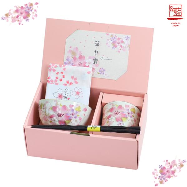 食器 おしゃれ 飯碗湯呑(ハンカチ付) 花柄