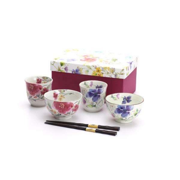 2026 母の日 名入れ 食器 プレゼント ギフト 箸 名前入り 誕生日 おしゃれ 美濃焼 花ものがたり 飯碗湯呑箸セット 12種 女性 祖母 母 お母さん 義母