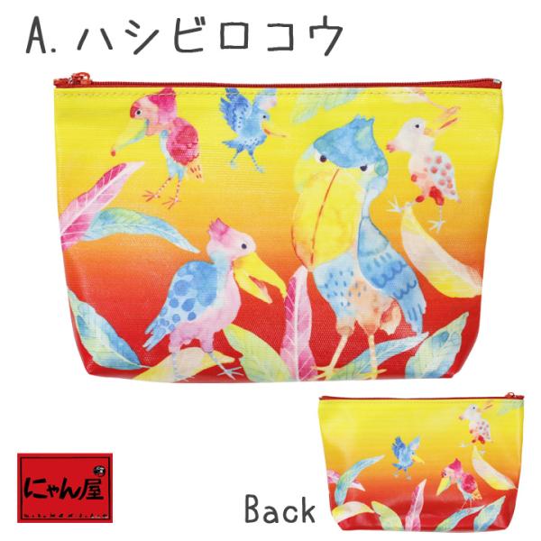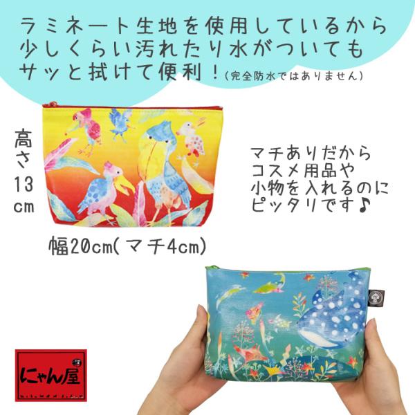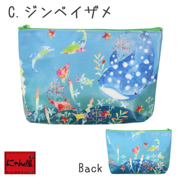ポーチ レディース おしゃれ かわいい ラミネート ハシビロコウ ジンベイザメ