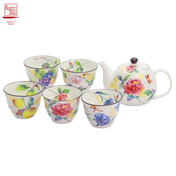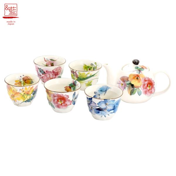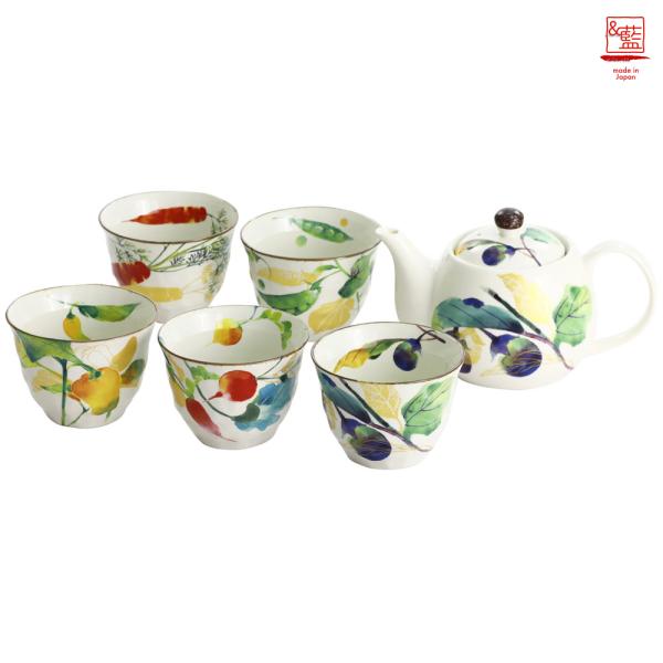 美濃焼「&藍」彩菜香 5客ポット茶器 日本製 ポット 茶器 湯呑み ギフト 贈り物 新築祝い 結婚祝い 出産祝い 内祝い 御祝 新生活 誕生日 プレゼント