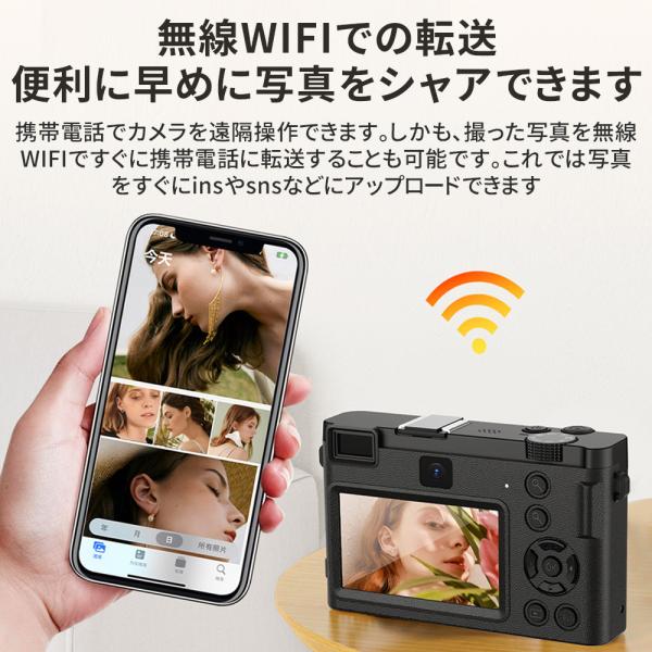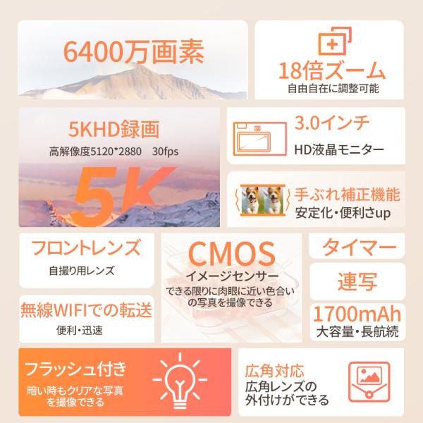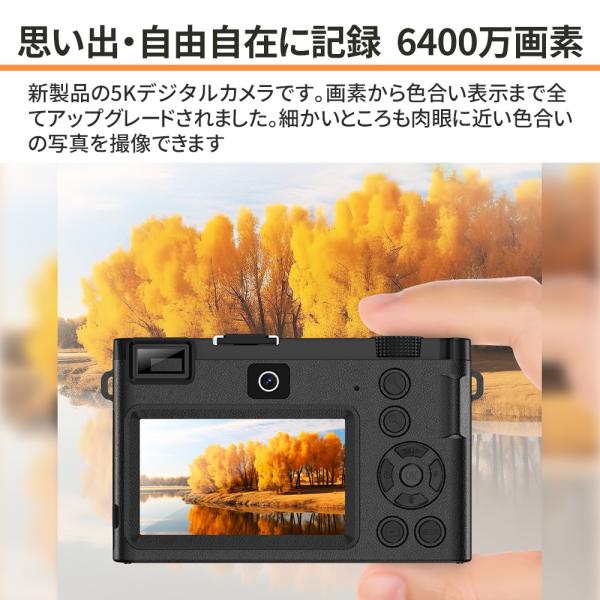 【正規品】 デジタルカメラ デジカメ 5K 6400万画素 高画質 WiFi機能 18倍ズーム 3.0インチ ビデオカメラ オートフォーカス 手振れ補正 自撮り スマホ転送 学生