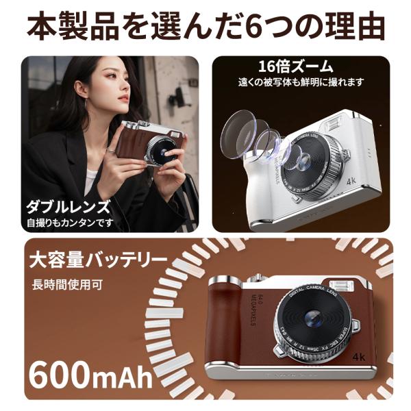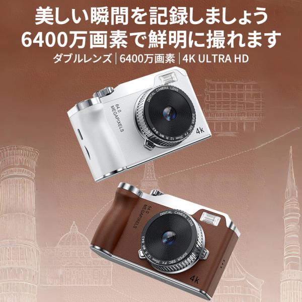 【限定セール】2025 デジカメ 安い デジタルカメラ 4K 6400万画素 高画質 16倍ズーム 自撮り 初心者 学生 ビデオカメラ オートフォーカス 手振れ補正 スマホ転送