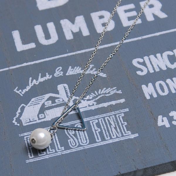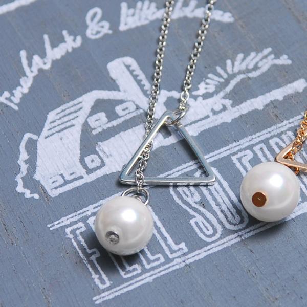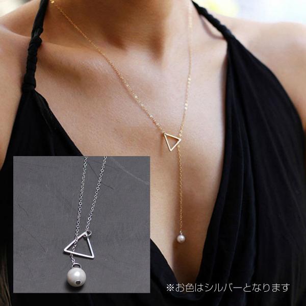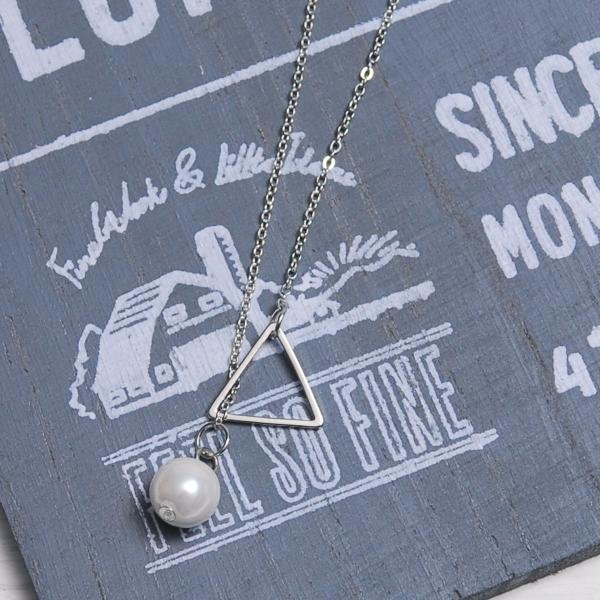 ラリエットタイプのエレガントなロングネックレス。ゴールドのトライアングルモチーフがポイントです。先端にはパールがついているので、エレガントな雰囲気に。カジュアルコーデの仕上げとしても使いやすいアイテムです◎