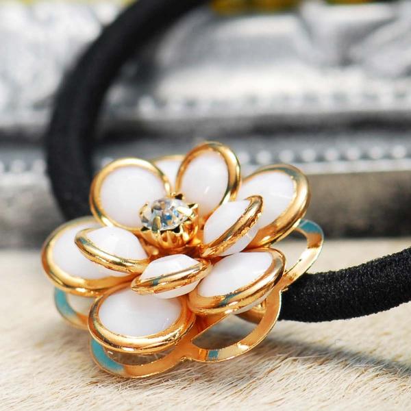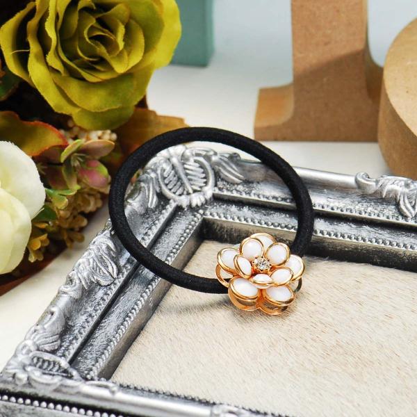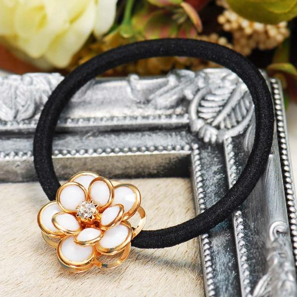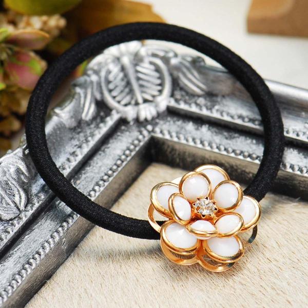 花モチーフ ヘアゴム 白 ゴールド ヘアアクセサリー