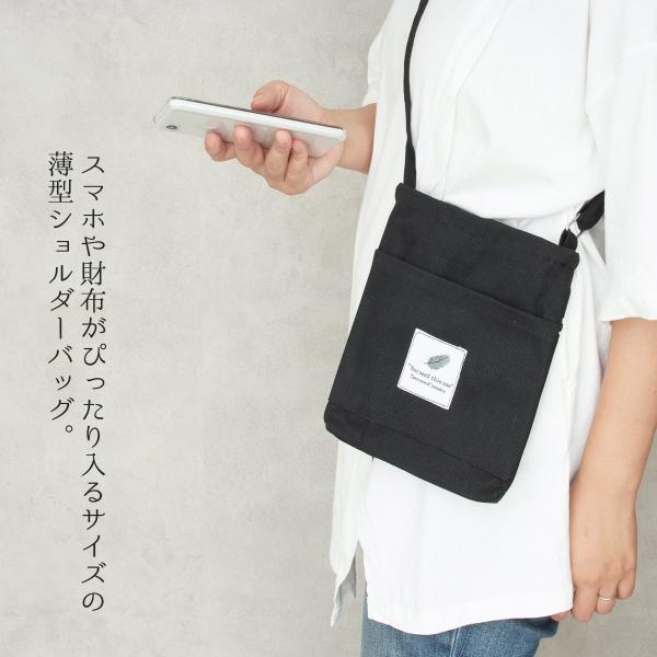 帆布(キャンバス)生地のシンプルな薄型ショルダーバッグ