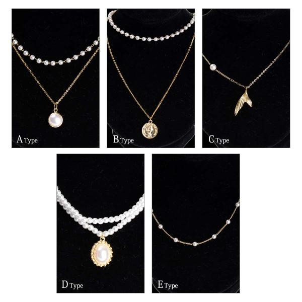 ネックレス ゴールド フェイクパール コイン 人魚 レイヤード 重ね付け 華奢 レディース シンプル 大人可愛い 上品 アクセサリー ジュエリー