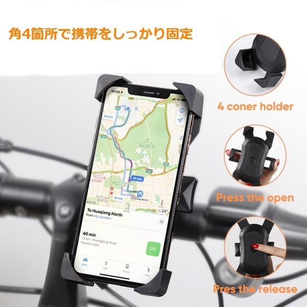 セール中【送料無料】【LGO】自転車・バイク用スマホホルダー スマートフォンの4隅を固定ロック GPSナビ 4.7-6.5インチスマホ対応 工具不要着脱簡単