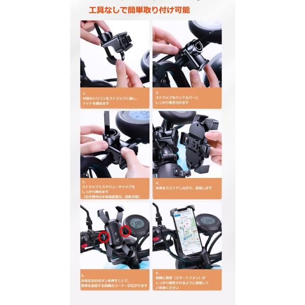 自転車・バイク用スマホホルダー 自転車に固定工具不要