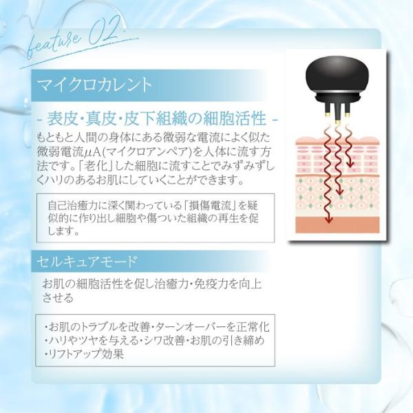 特殊な電気パルスを用いて、コラーゲンやヒアルロン酸などの分子の大きな成分や非電解成分を深く浸透させます。