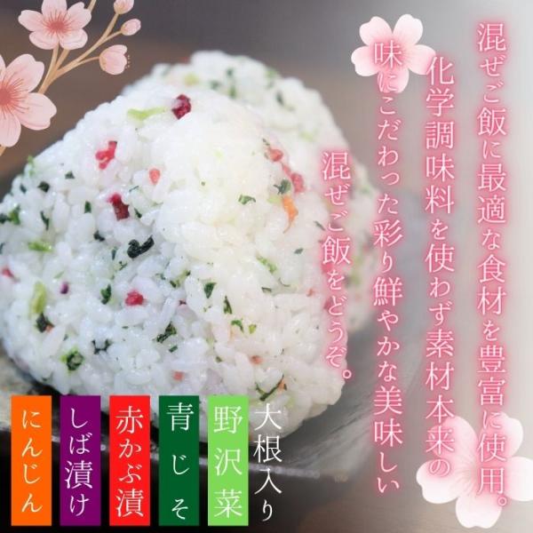 赤かぶ・野沢菜・青じそ・しば漬け・大根・にんじん入りの彩り綺麗な混ぜご飯の素。おにぎり・お弁当にどうぞ。