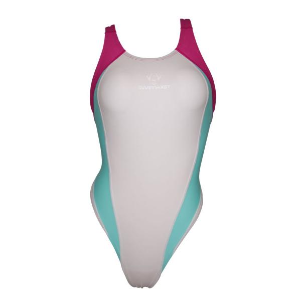 [SWIMHXBY] 競泳水着 レディース ガールズ 282 ハイレグモデル 白エメラルドピンク