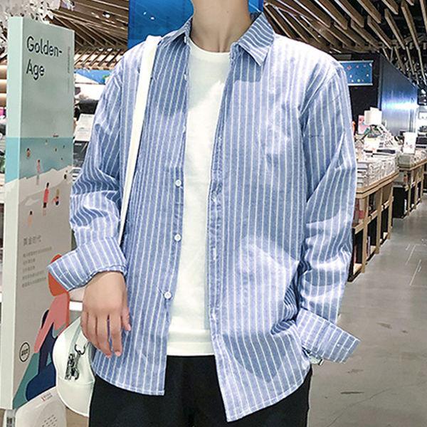 シャツ メンズ長袖シャツ ストライプ柄 ゆったり