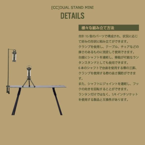 DUAL STAND MINI はランタンの取り付け、様々な状況に応じてクランプや三脚として使用できるランタンスタンド。
