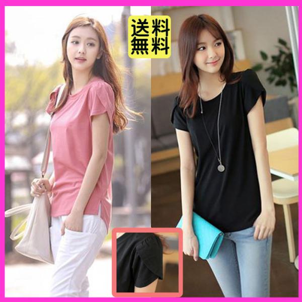 レディースシャツ トップス 半袖 きれい見せ カットソー Tシャツ tシャツ