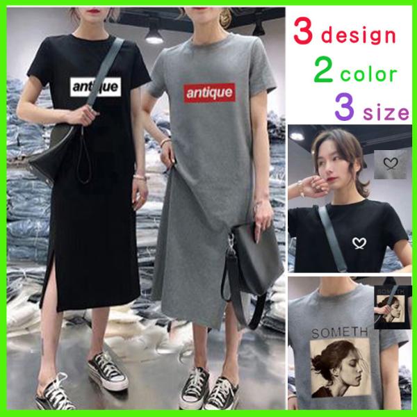 ワンピース マキシ丈 半袖 サイドスリット ゆったり 部屋着 ルームウエア レディース