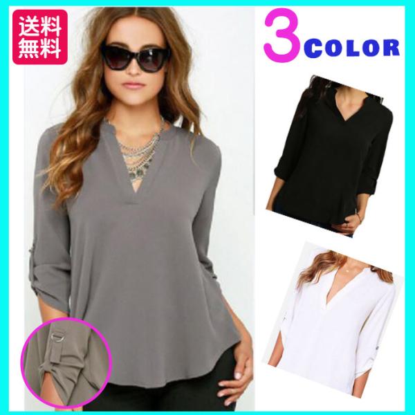 カットソー トップス シャツ ブラウス Vネック レディース 長袖 5分袖 春 夏