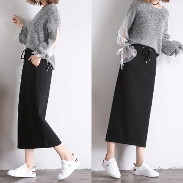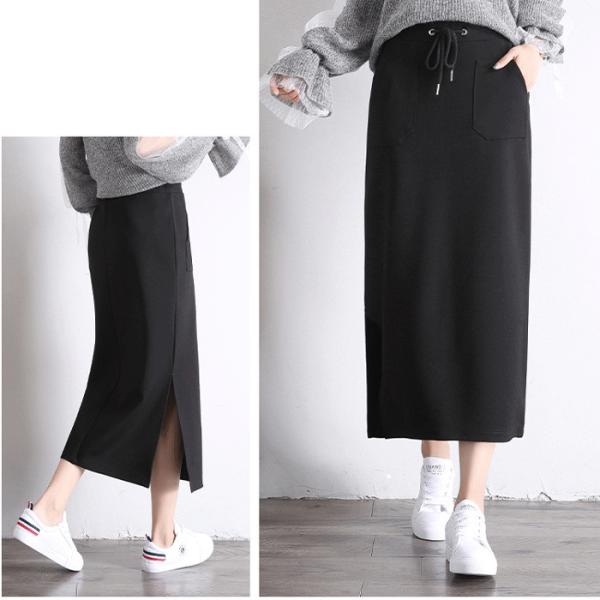 マキシ丈スカート ロングスカート ブラック サイドスリットスカート 春 夏 秋 冬 30代 40代 50代